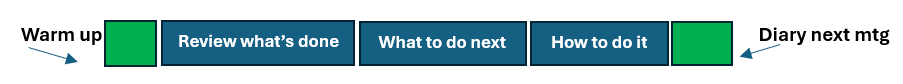 – A planned agenda (few things in depth, not a huge tick list, and no unwelcome surprises)
